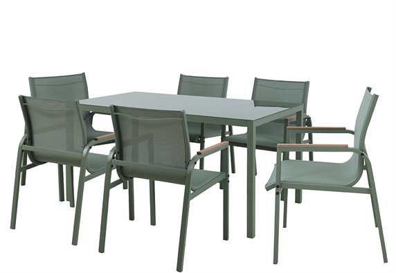 Το σετ κήπου Olive θα αποτελέσει την τέλεια επιλογή για σένα που θέλεις να φιλοξενείς συχνά τους αγαπημένους σου και να τους χαρίσεις όμορφες στιγμές χαλάρωσης και ξεγνοιασιάς. Χάρη στην απόχρωση και τον σχεδιασμό του, θα ταιριάξει αρμονικά σε κάθε βεράντα ή αυλή και καθίσταται ιδανικό για έξι άτομα. Η μεταλλική κατασκευή του προσδίδει ανθεκτικότητα και αντοχή στο πέρασμα του χρόνου.