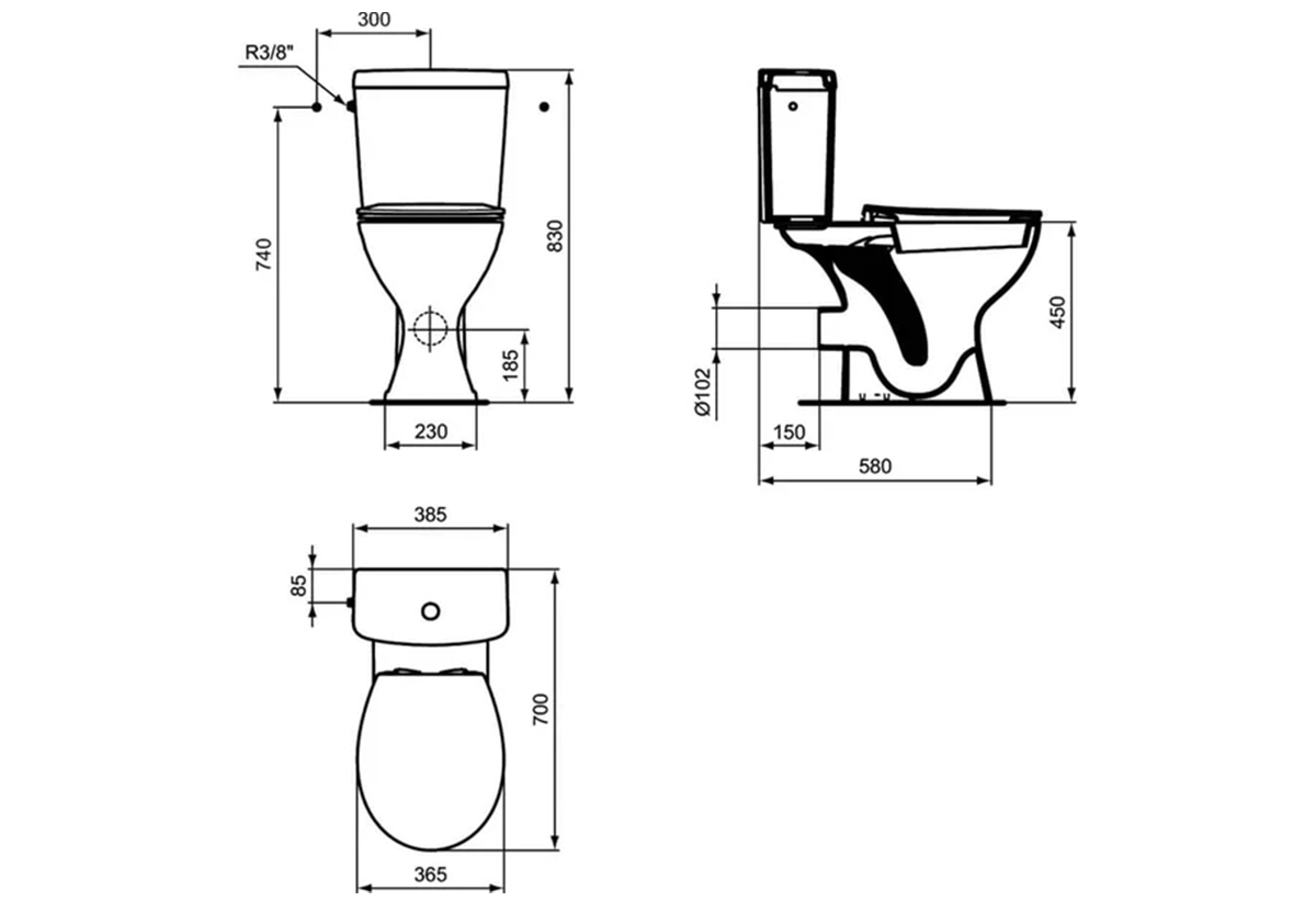 Σετ Λεκάνης ΑμεΑ Porcher Ulysse Οριζόντιας Αποχέτευσης