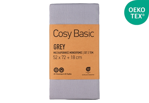 Σετ Μαξιλαροθήκες Ionion Cosy Basic 72x52cm Grey 2τμχ