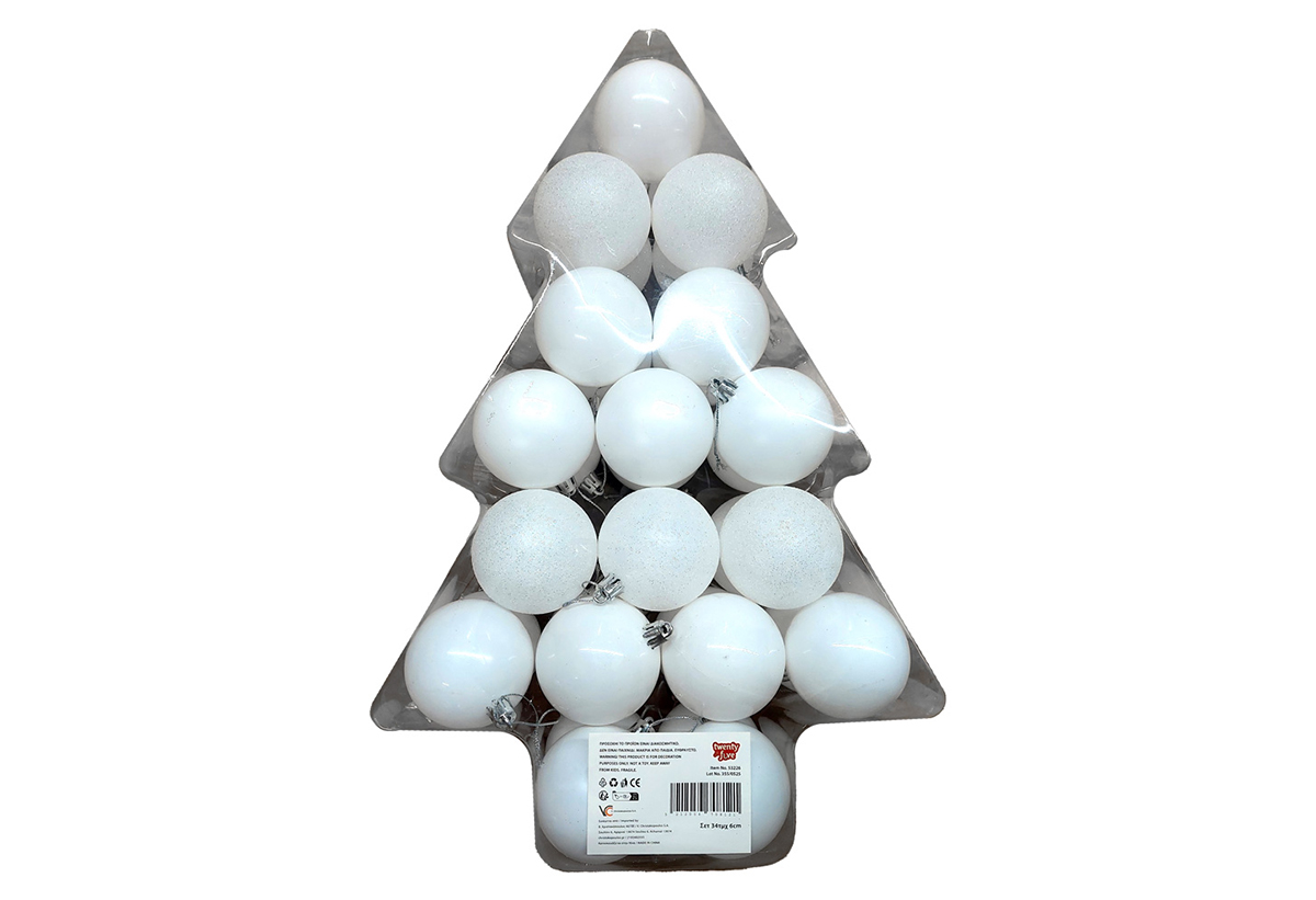 Σετ Μπάλες Χριστουγεννιάτικες Λευκές Mixed 34τμχ