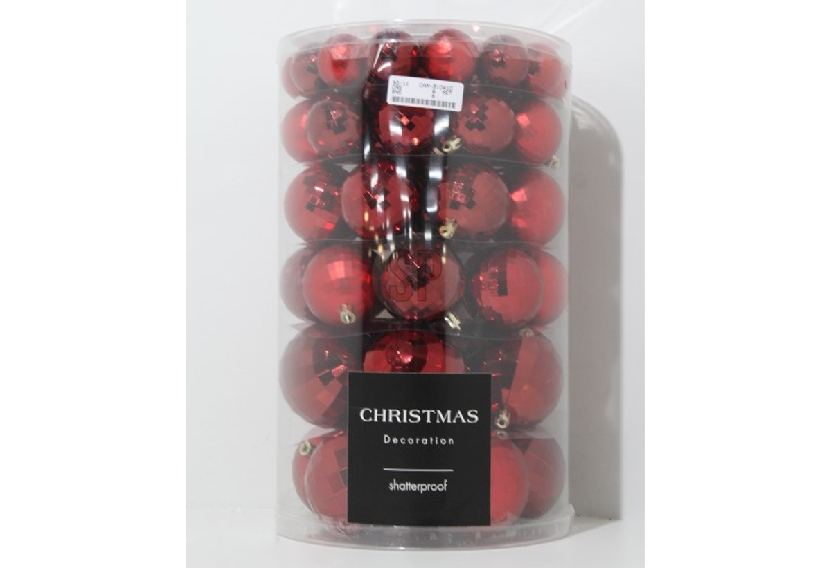 Σετ Μπάλες Χριστουγεννιάτικες Πλαστικές 64τμχ Κόκκινες