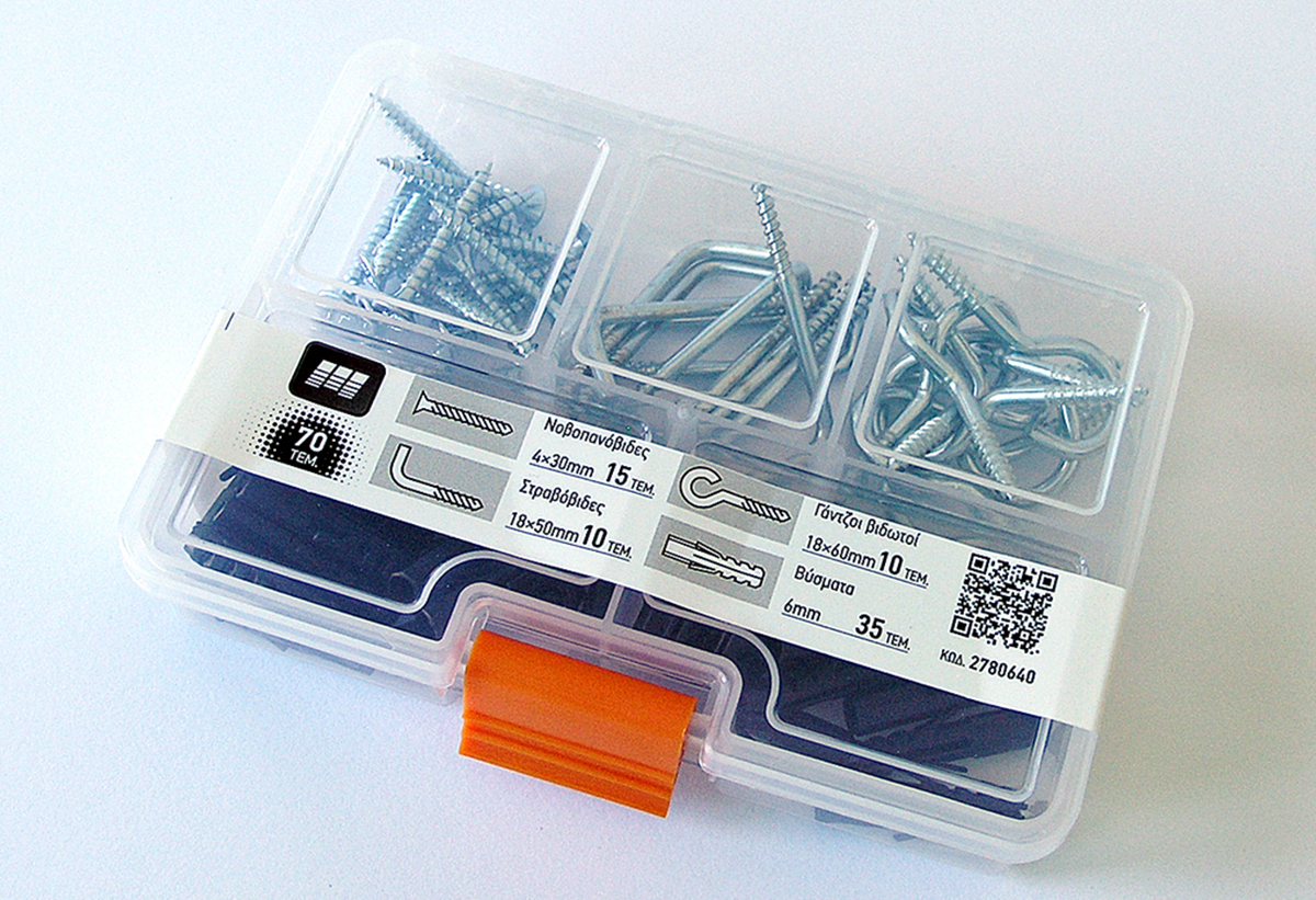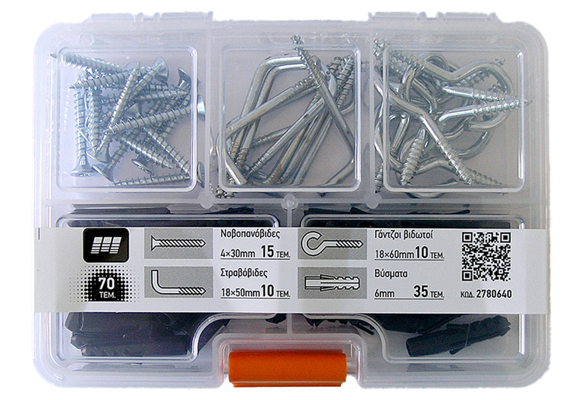Σετ Νοβοπανόβιδες/Στραβόβιδες/Γάντζοι/Βύσματα Amtech 70τμχ