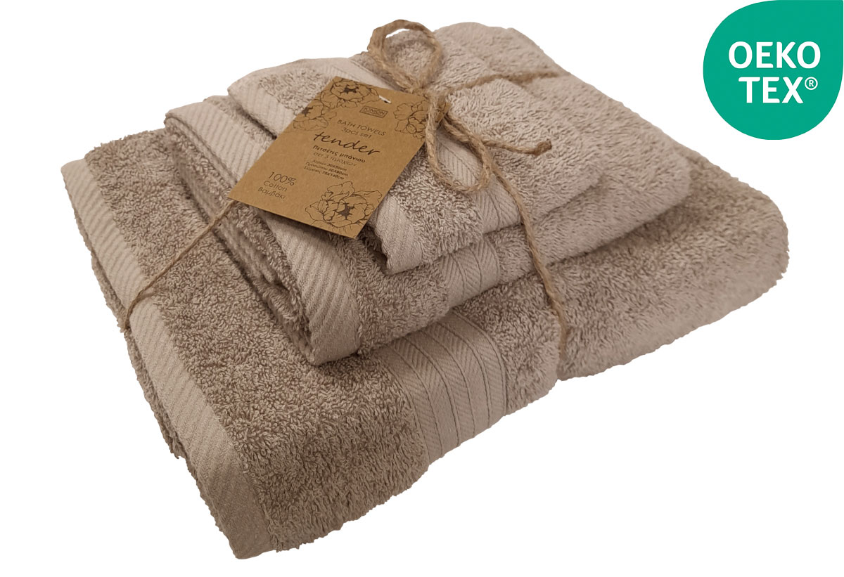 Σετ Πετσέτες Μπάνιου Ionion Tender 3τμχ Taupe