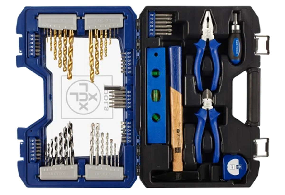 Αυτό το σετ αποτελεί μια απαραίτητη προσθήκη στην εργαλειοθήκη σου και την ιδανική επιλογή, για να καλύψεις ένα μεγάλο εύρος DIY κατασκευών. Περιλαμβάνει μια μεγάλη ποικιλία σύνεργων για τις εργασίες σου, όπως πένσα, τρυπάνια, βίδες, σφυρί, μεζούρα και μύτες. Όλα αυτά διατίθενται σε μία ανθεκτική πλαστική βαλίτσα, όπου εσωτερικά χωρίζεται σε 2 επιμέρους τμήματα, για καλύτερη οργάνωση και εύκολη μεταφορά.