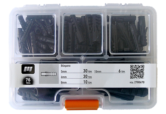 Το σετ της Amtech, δεν θα πρέπει να λείπει απο την εργαλειοθήκη του σπιτιού σου. Είναι εξοπλισμένο με 75 τεμάχια, που πρόκειται να σε βοηθήσουν σε πολλά οικιακά μαστορέματα. Το σετ περιλαμβάνει 30 βύσματα 5mm, 30 βύσματα 6mm, 10 βύσματα 8mm και 6 βύσματα 10mm.