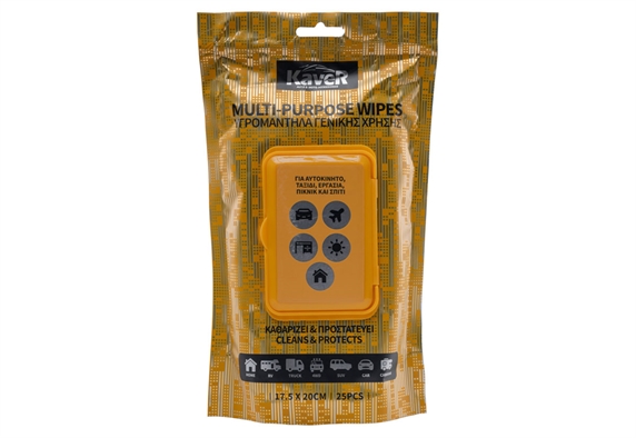 Τα υγρά μαντηλάκια γενικής χρήσης από την Kaver αποτελούν ένα απαραίτητο αξεσουάρ για έχεις μαζί σου στη δουλειά, στο ταξίδι ή στο αυτοκίνητό σου. Φροντίζει, καθαρίζει και προστατεύει αποτελεσματικά τις επιφάνειες. Η πρακτική συσκευασία περιλαμβάνει συνολικά 25 μαντηλάκια.