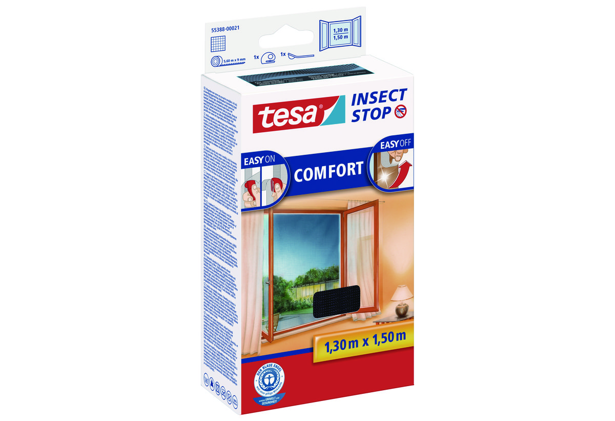 Σήτα Παραθύρου Σταθερή Tesa Comfort 130x150cm Μαύρη