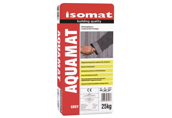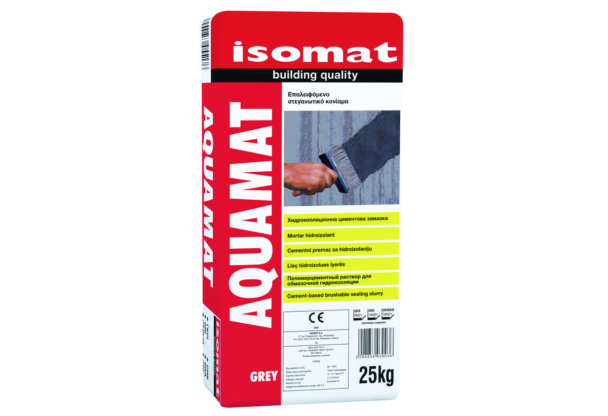 To ΑQUAMAT είναι ένα επαλειφόμενο στεγανωτικό κονίαμα με βάση το τσιμέντο.