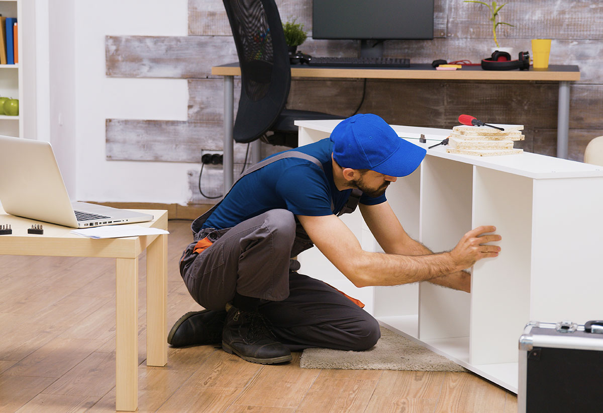 Τεχνικός κατά τη συναρμολόγηση ενός επίπλου.