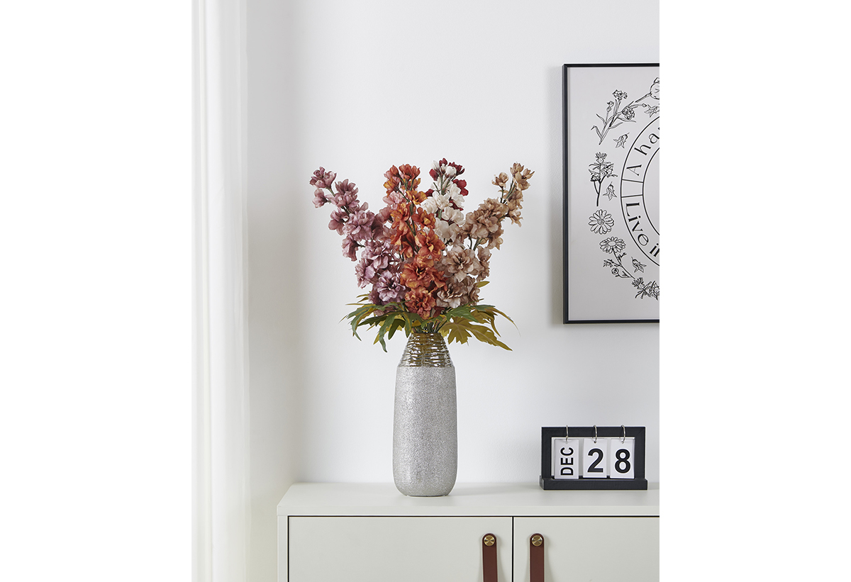 Ένα συνθετικό λουλούδι σε απαλή μωβ απόχρωση που αποπνέει κομψότητα και γαλήνη, ιδανικό για να δώσεις μια ρομαντική, ζεστή ατμόσφαιρα στον χώρο σου. Τα πέταλα έχουν μια φυσική, ανάλαφρη κίνηση που θυμίζει πραγματικό λουλούδι, ενώ η λεπτεπίλεπτη δομή του κλαδιού προσθέτει μια οργανική ισορροπία στη διακόσμηση. Μπορείς να το τοποθετήσεις μόνο του για μια μίνιμαλ πινελιά ή να το συνδυάσεις με άλλα διακοσμητικά στοιχεία για πιο πλούσιες συνθέσεις. Χωρίς ανάγκη φροντίδας, διατηρεί πάντα την όμορφη εμφάνισή του και ανανεώνει τον χώρο σου με μια διακριτική αίσθηση φρεσκάδας όλο τον χρόνο.