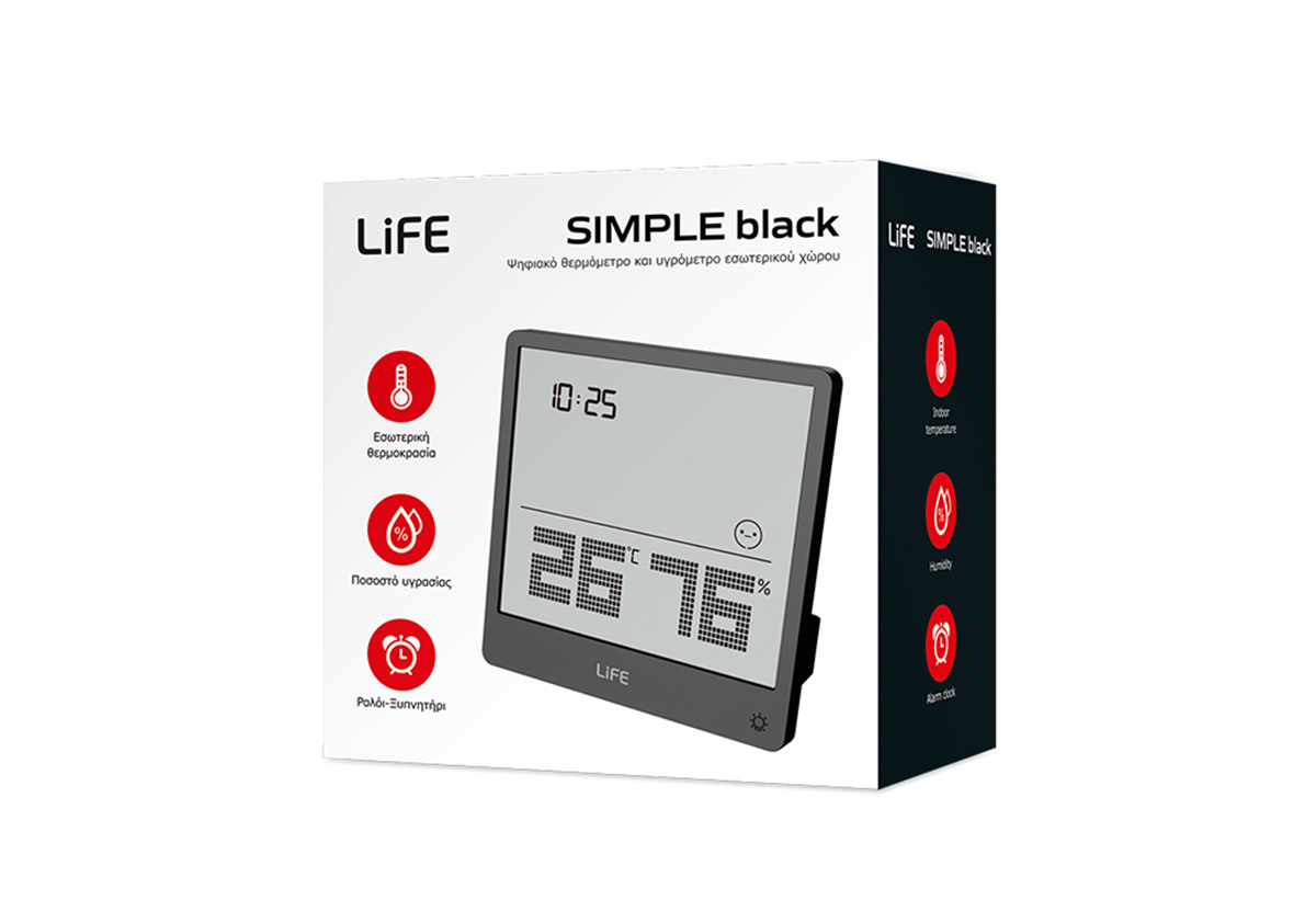 Θερμόμετρο/Υγρόμετρο Εσωτερικού Χώρου Life Simple Black