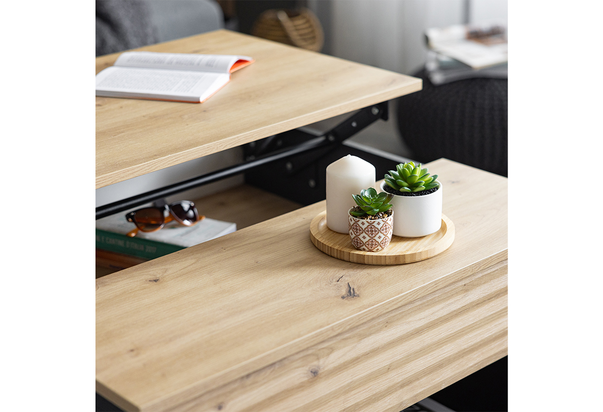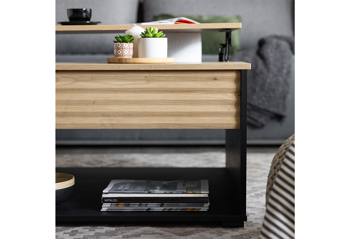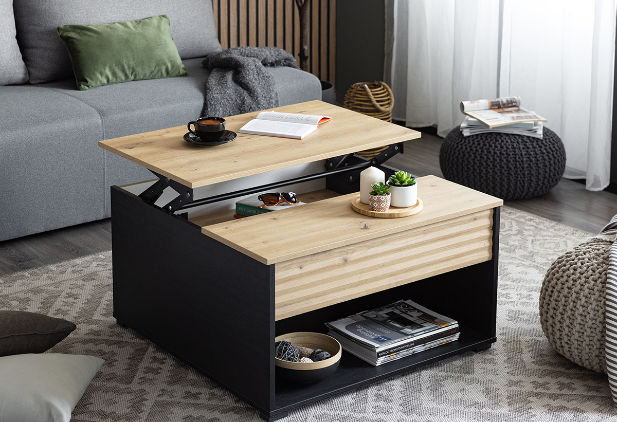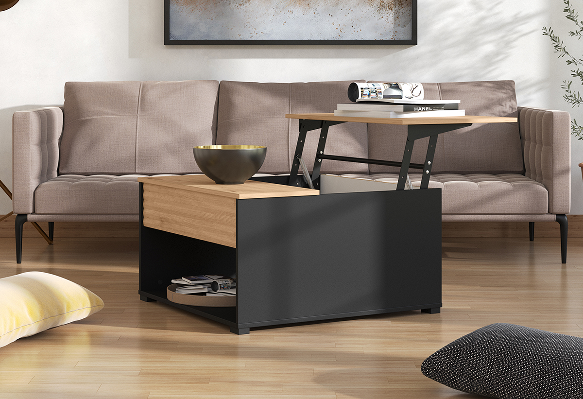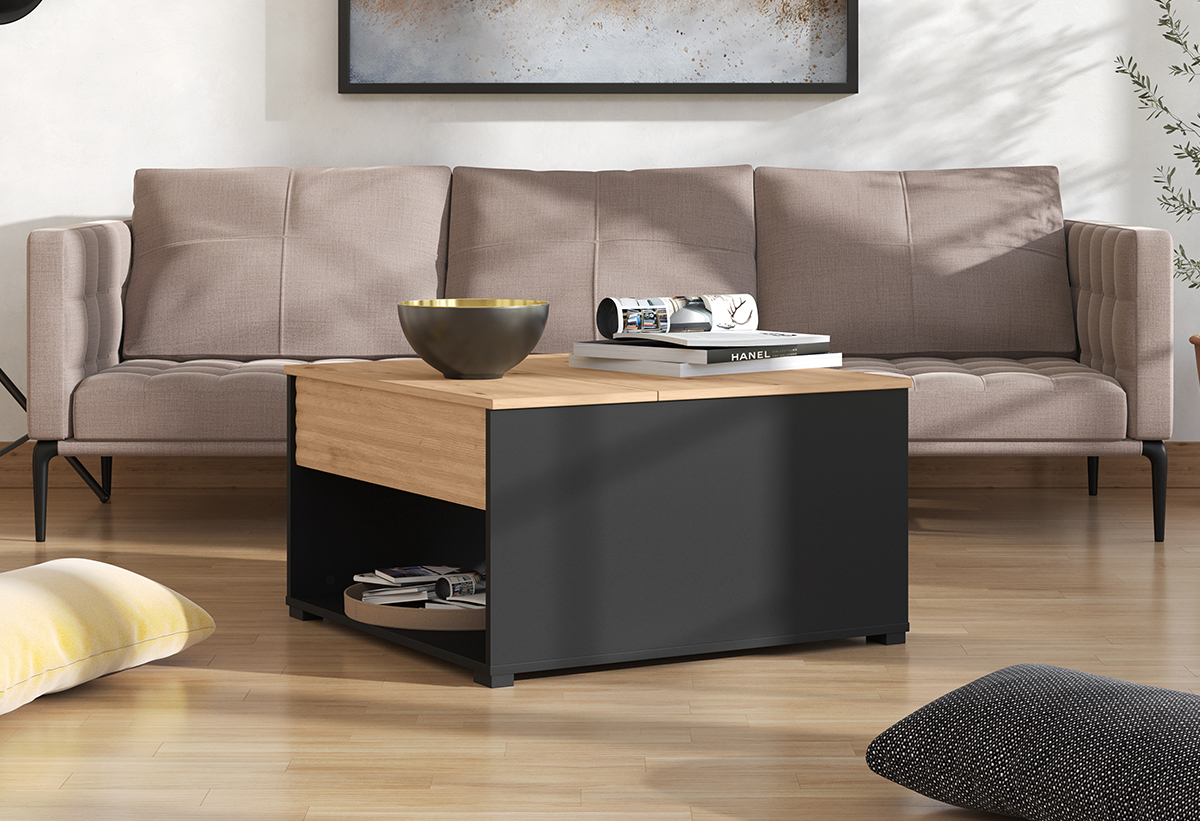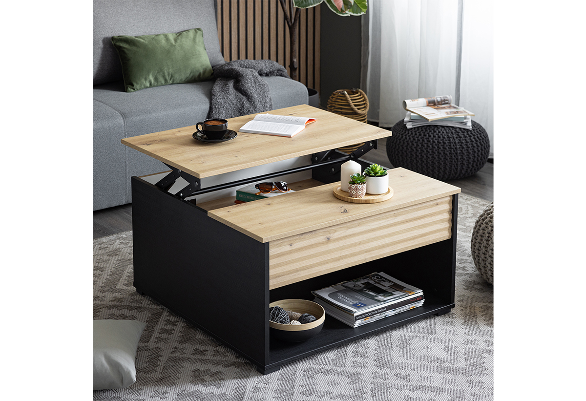Τραπέζι Forma Ideale Taranto με Ανυψωμένη ΕπιφάνειαNatural/Μαύρο M80xΠ80xY45cm
