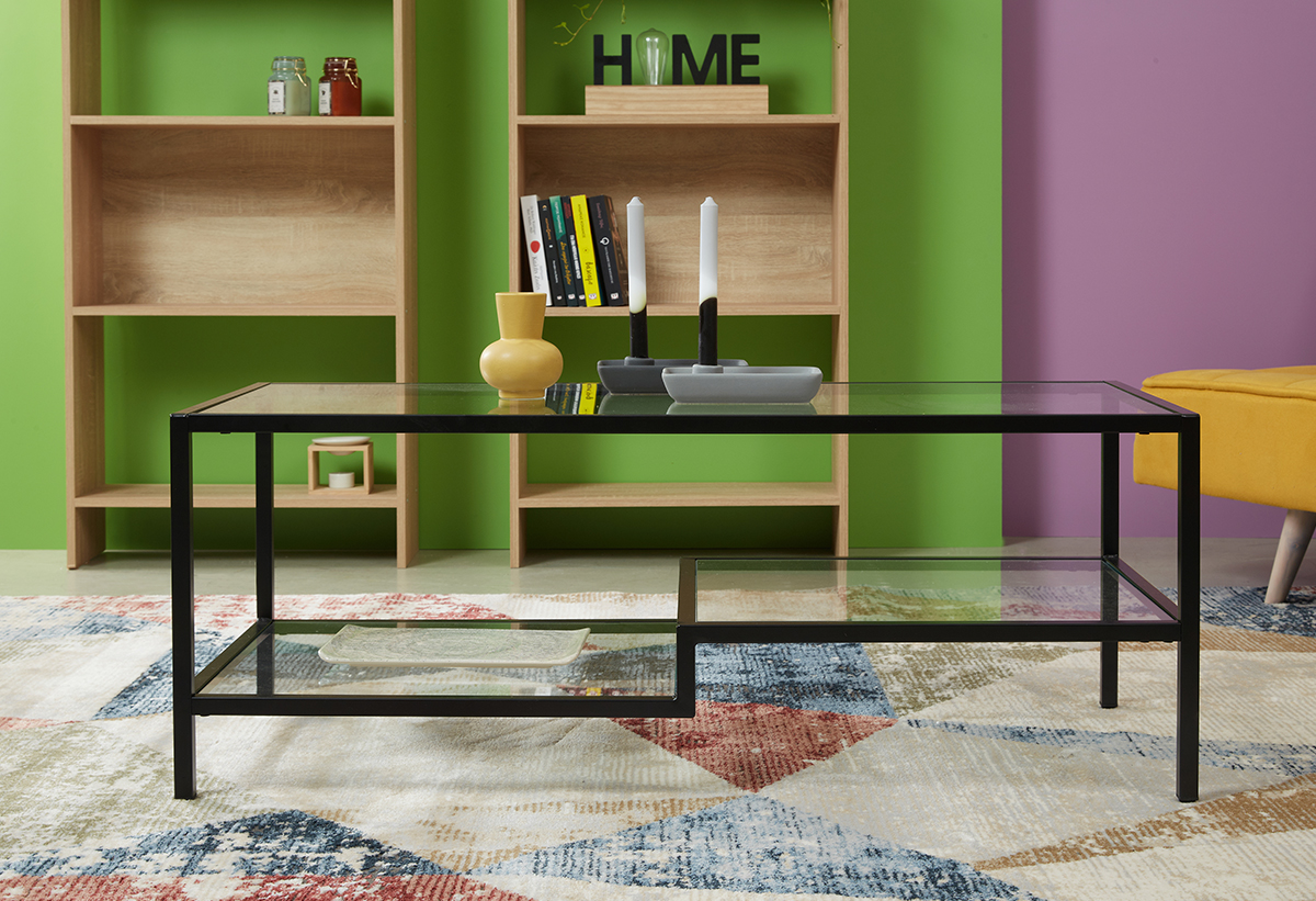 Coffee Step Τραπέζι Liberta Γυάλινο/Μαύρο 110x50x42cm
