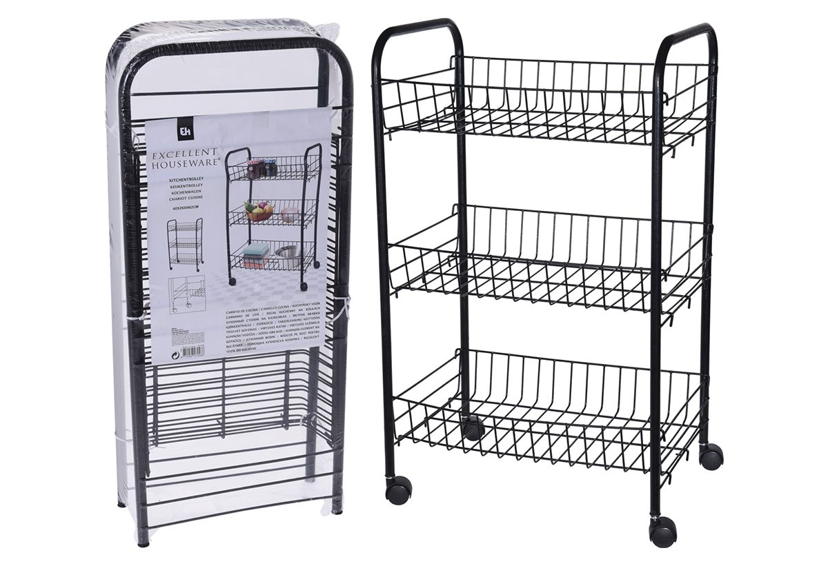 To τρόλεϊ κουζίνας είναι η ιδανική λύση για να τακτοποιήσεις τον χώρο σου, αποτελεσματικά και με στιλ. Κατασκευασμένο από μέταλλο, παρουσιάζει ανθεκτικότητα και προσφέρει μακροχρόνια χρήση και αντοχή. Με 3 θέσεις αποθήκευσης, μπορείς να τοποθετείς τρόφιμα, δοχεία ή ό,τι άλλα αντικέιμενα επιθυμείς, εξασφαλίζοντας βέλτιστη οργάνωση. Χάρη στις διαστάσεις του, είναι η κατάλληλη επιλογή για κάθε δωμάτιο, μικρό ή μεγάλο.