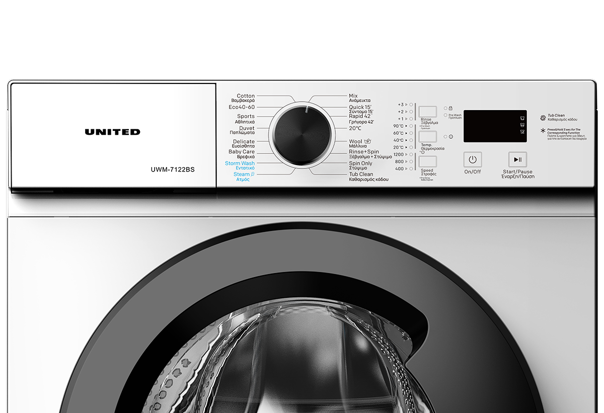 United UWM-7122BS Πλυντήριο Ρούχων 7kg