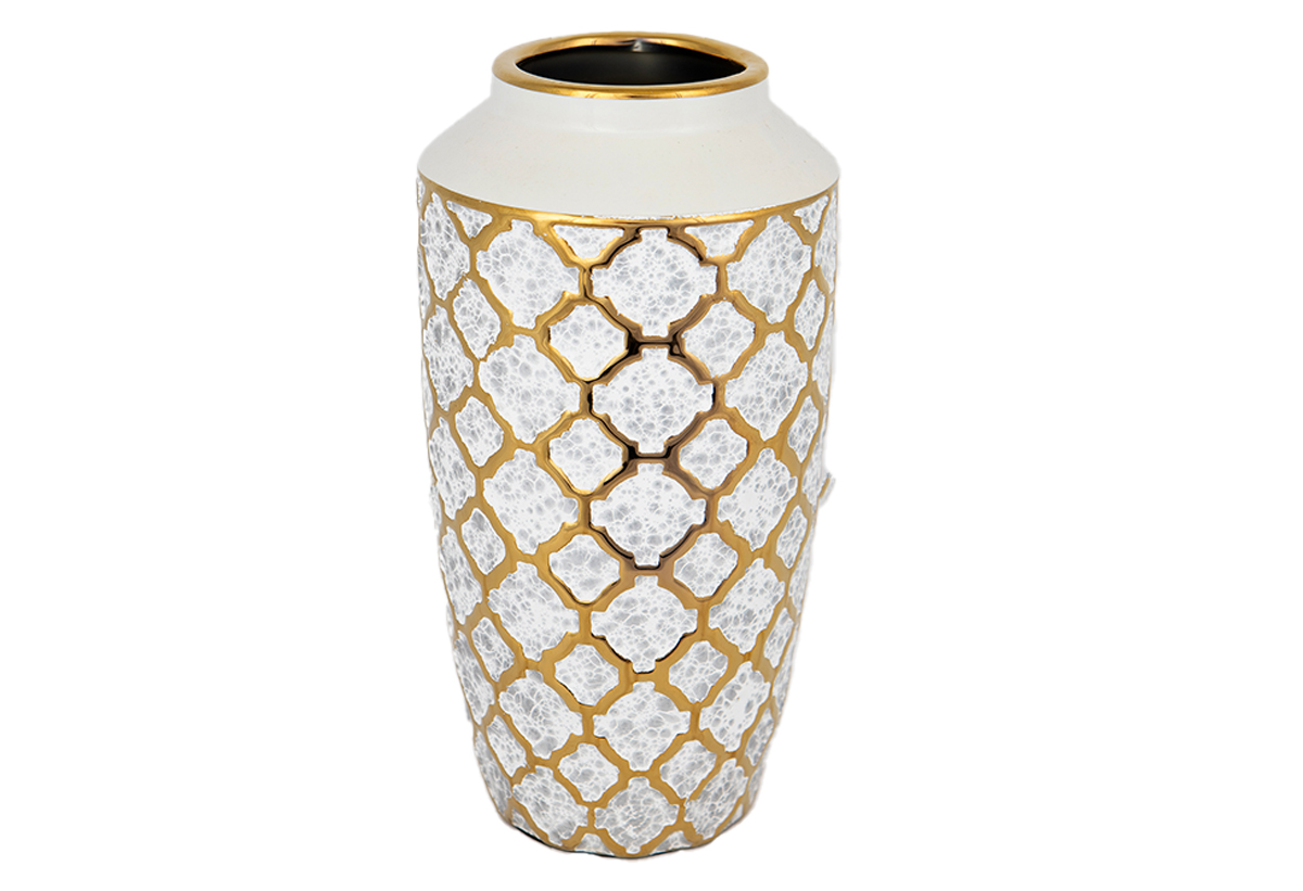 Βάζο Κεραμικό Eurolamp Χρυσό/Λευκό Μ13xΠ13xΥ25cm