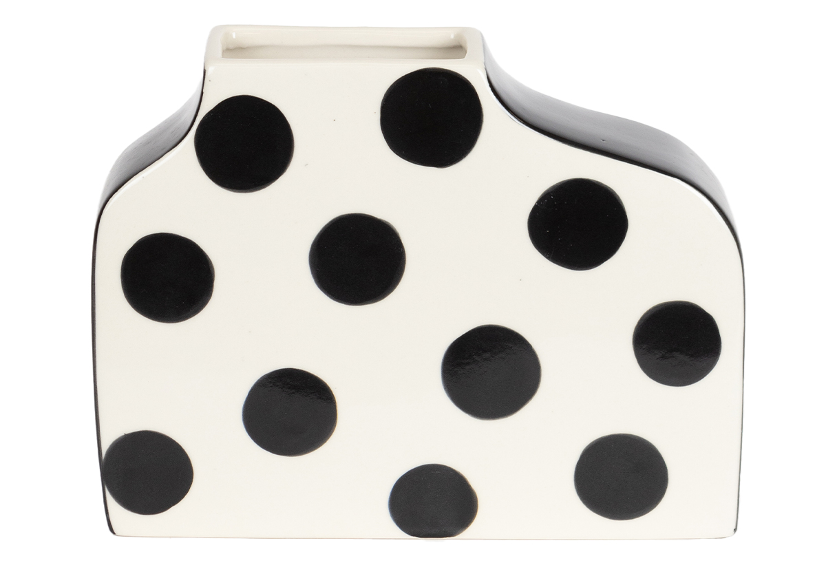 Βάζο Κεραμικό Harmony & Living Dots Λευκό/Μαύρο