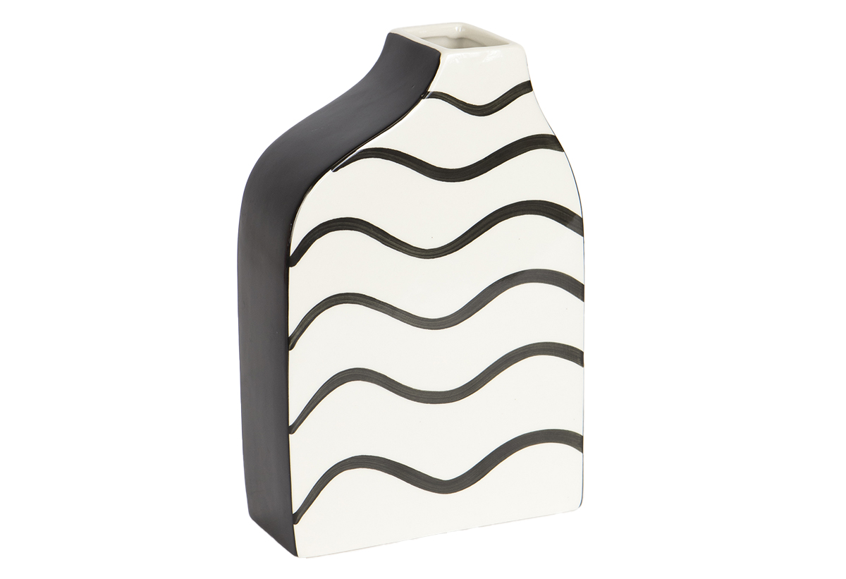 Βάζο Κεραμικό Harmony & Living Waves Λευκό/Μαύρο