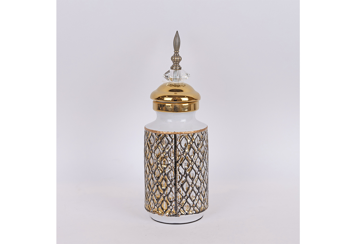 Βάζο με Καπάκι Κεραμικό Eurolamp Λευκό & Χρυσό Μ12xΠ12xΥ32cm