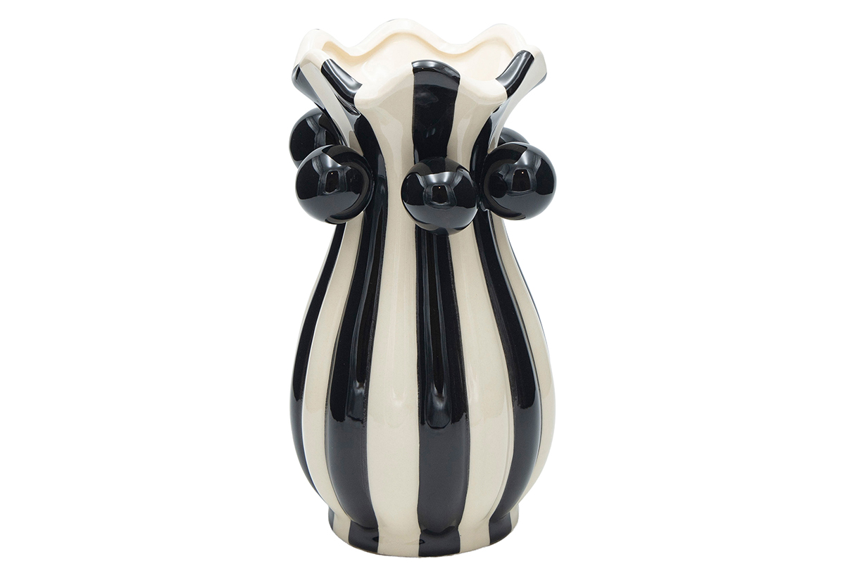 Βάζο Ριγέ Eurolamp Φ14x25cm Λευκό Μαύρο