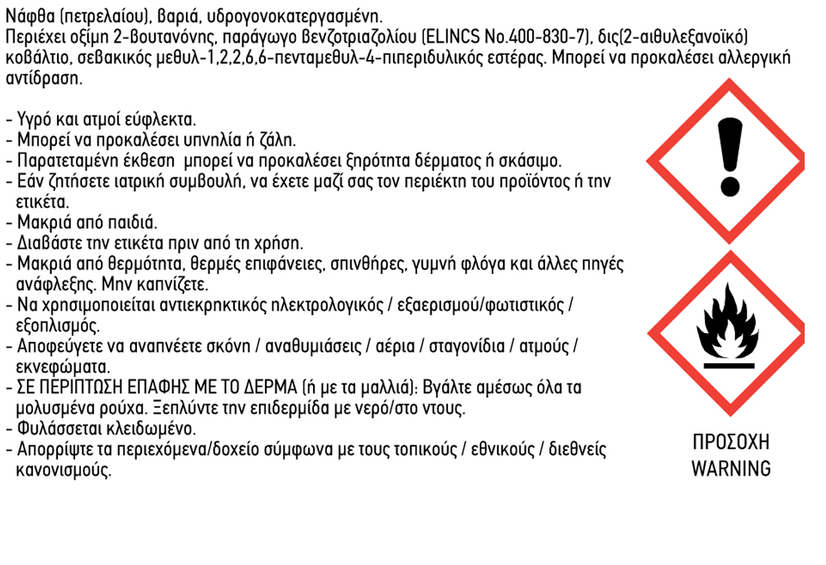 Το βερνίκι είναι στεγνό στην αφή μετά από 3-4 ώρες. Ανάλογα με τις συνθήκες εφαρμογής, ο χρόνος μπορεί να διαφέρει.