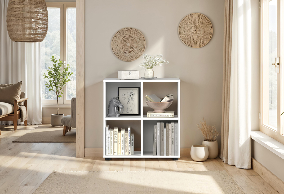 Με τέσσερις τετράγωνες θέσεις, σου δίνει τη δυνατότητα να οργανώσεις ό,τι χρειάζεσαι με τάξη και στιλ. Χρησιμοποίησέ τη για βιβλία, καλάθια, κάδρα ή ακόμα και φυτά, και διαμόρφωσε έναν χώρο που αντικατοπτρίζει τη δική σου αισθητική.