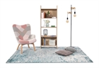 Απεικονίζεται η βιβλιοθήκη τοποθετημένη σε ένα σαλόνι με διάφορα έπιπλα γύρω