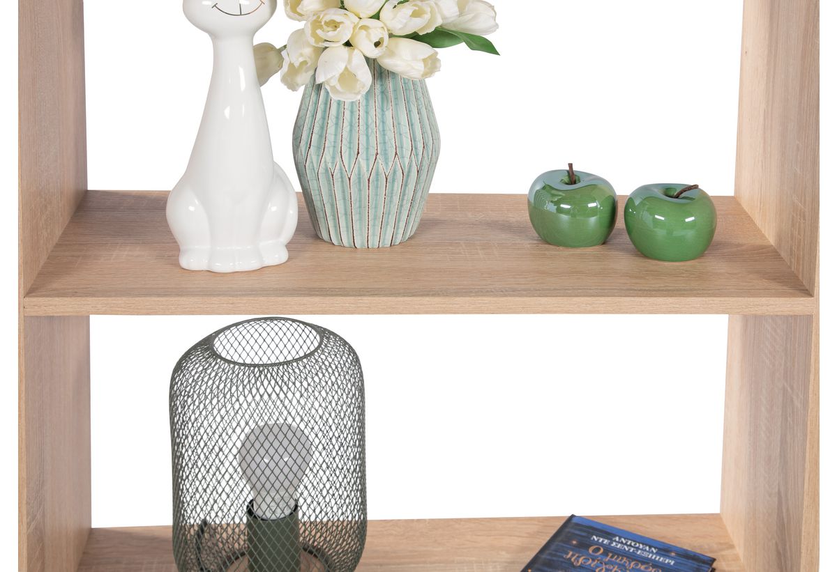 Είναι κατασκευασμένη από μελαμίνη, καθιστώντας την ανθεκτική στον χρόνο και στο βάρος, για να τοποθετείς έναν ικανοποιητικό αριθμό βιβλίων και διακοσμητικών. Παράλληλα, θα μπορείς να απομακρύνεις εύκολα τη σκόνη και τους λεκέδες, διατηρώντας το χρώμα και την όψη της. Διαθέτει 5 ράφια, παρέχοντας σου επαρκή χώρο, για να εμπλουτίσεις τη διακόσμηση σου, αλλά και για να οργανώσεις τα αντικείμενα σου. Έτσι, θα τα βρίσκεις άμεσα, χωρίς να χάνεις χρόνο στο ψάξιμο.