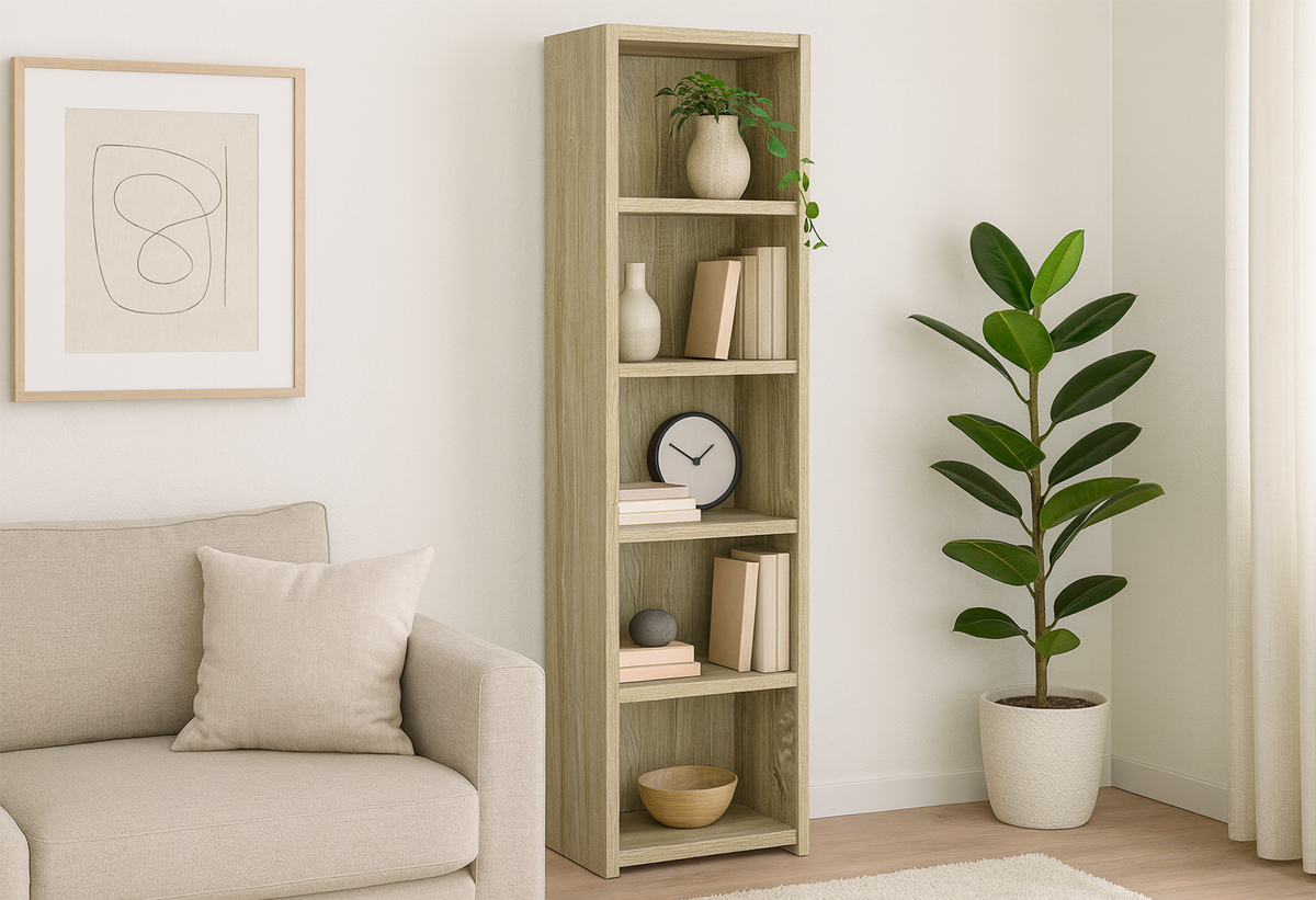 Διαθέτει 5 ράφια, που σου επιτρέπουν να οργανώσεις βιβλία, κουτιά αποθήκευσης, διακοσμητικά ή είδη γραφείου. Η κατακόρυφη διάταξη είναι ιδανική για να αξιοποιήσεις το ύψος του δωματίου χωρίς να δεσμεύεις πολύτιμο εμβαδόν στο δάπεδο.