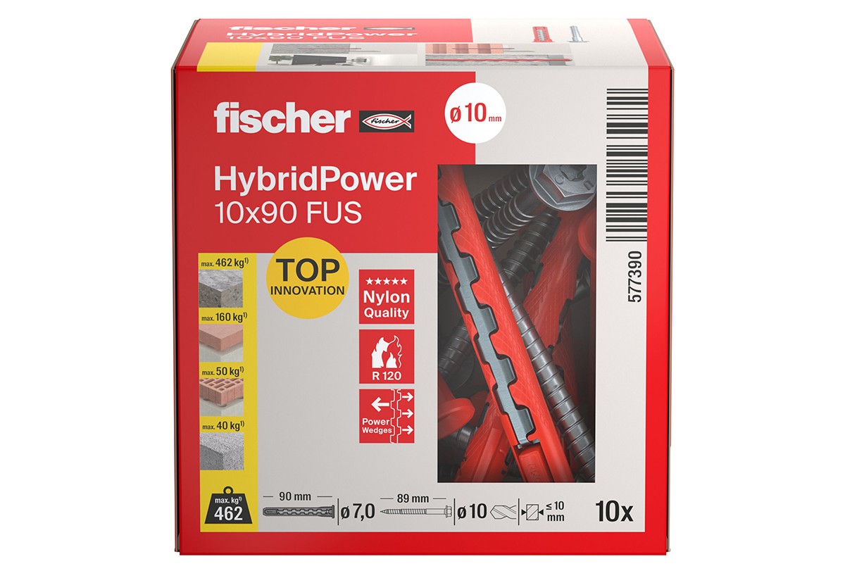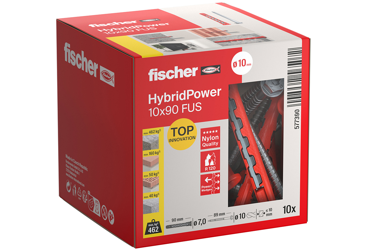 Βύσμα 90x10mm FUS Fischer Hybridpower με Βίδα 10τμχ