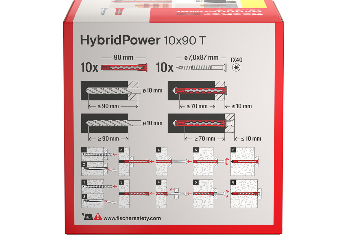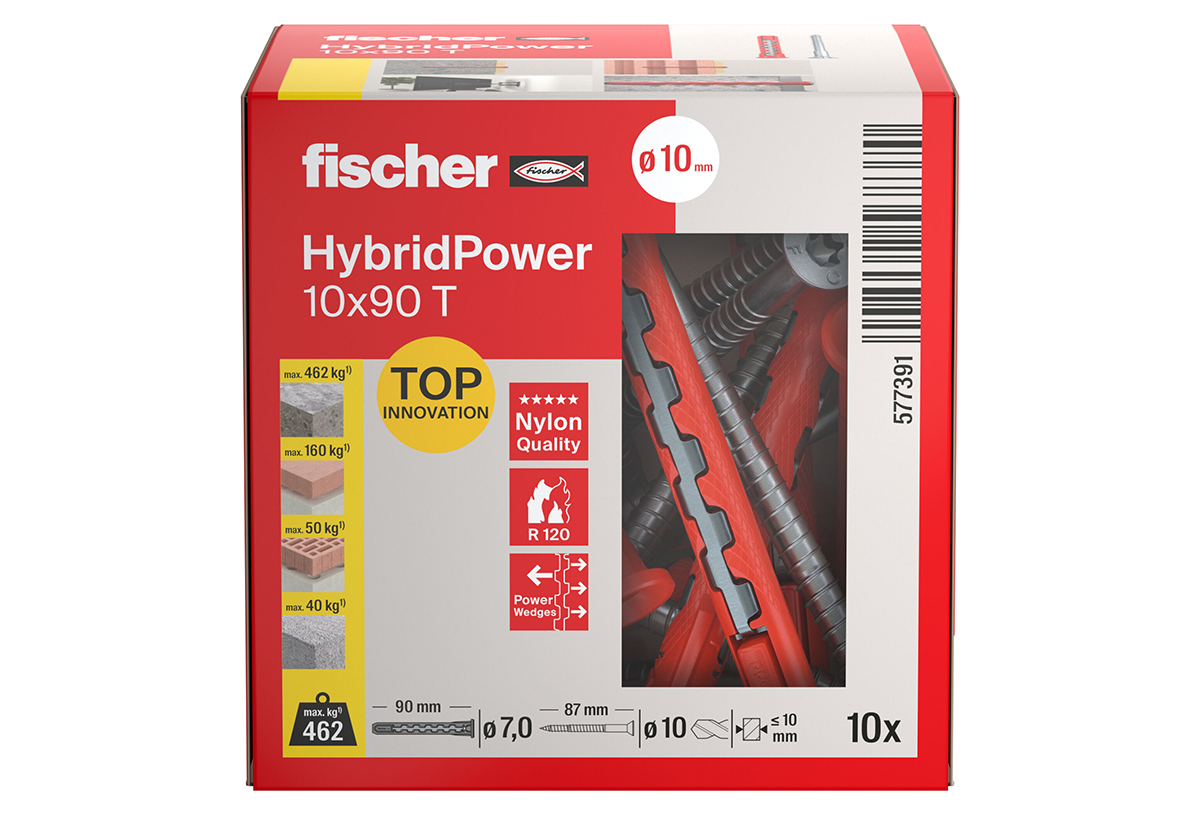 Βύσμα 90x10mm T Fischer Hybridpower με Βίδα 10τμχ