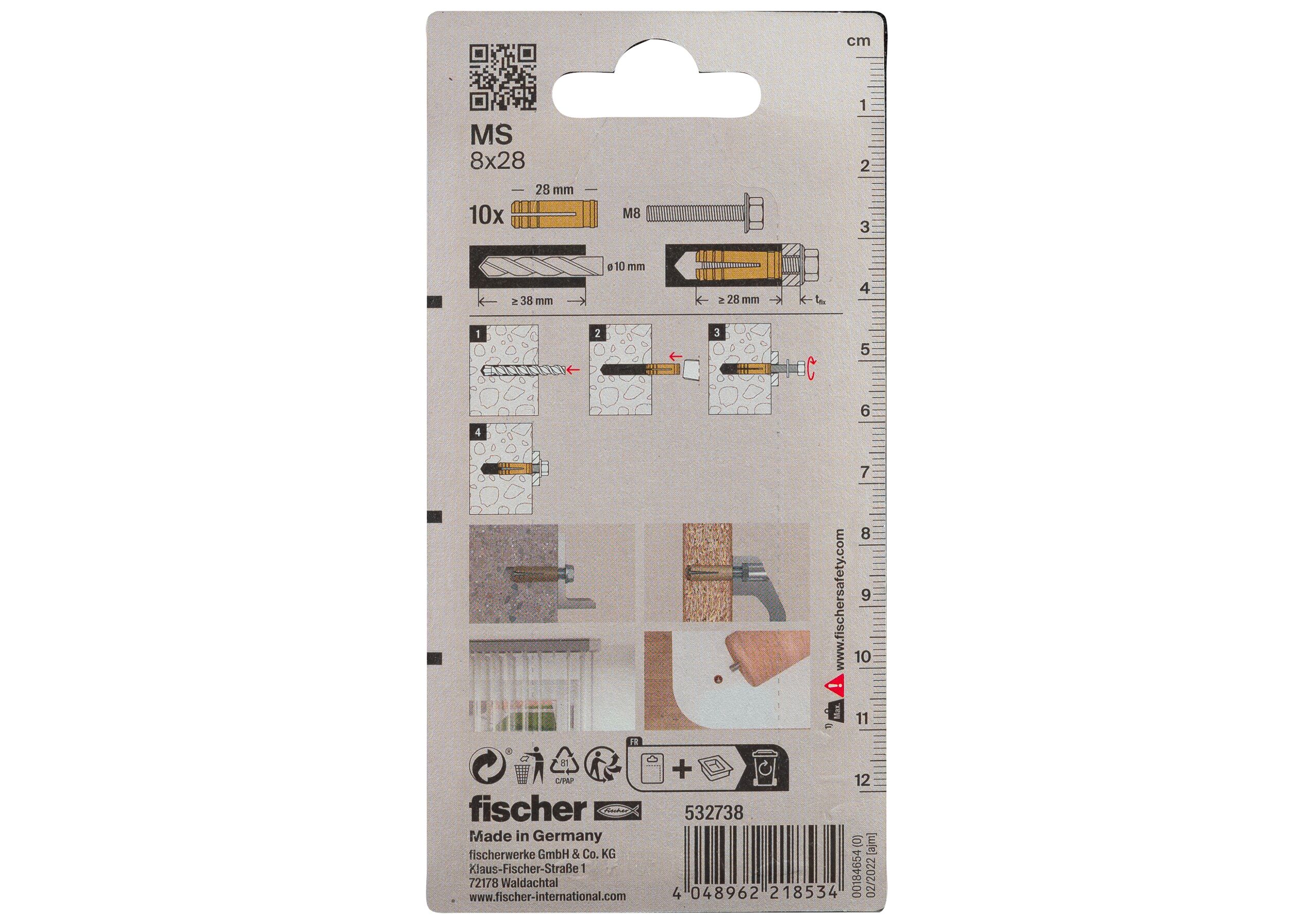 Βύσμα Fischer Μπρούτζινο 8x28mm 10τμχ
