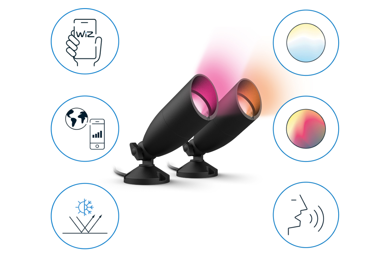 Οι λαμπτήρες εξωτερικού χώρου RGB της εταιρείας Wiz, είναι αδιάβροχοι και ανθεκτικοί σε κάθε καιρική συνθήκη, όπου μπορείς να τους έχεις πάντα στον κήπο ή την βεράντα σου χωρίς να ανησυχείς για την καταστροφή τους.