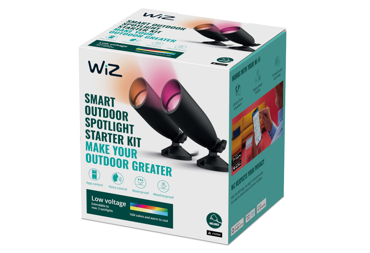 Οι προβολείς 10W χαμηλής τάσης RGB εξωτερικού χώρου Starter Kit της εταιρείας Wiz, είναι ιδανική επιλογή για να φωτίσεις την βεράντα, το μπαλκόνι ή τον κήπο σου από διαφορετικά σημεία και να δώσεις ξεχωριστή ατμόσφαιρα στον χώρο σου.