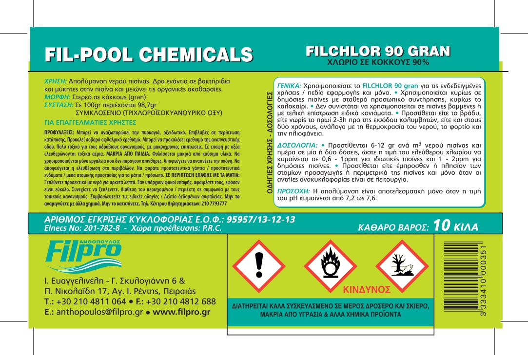 Χλώριο Τρίχλωρο 90 % σε Κόκκους 5kg