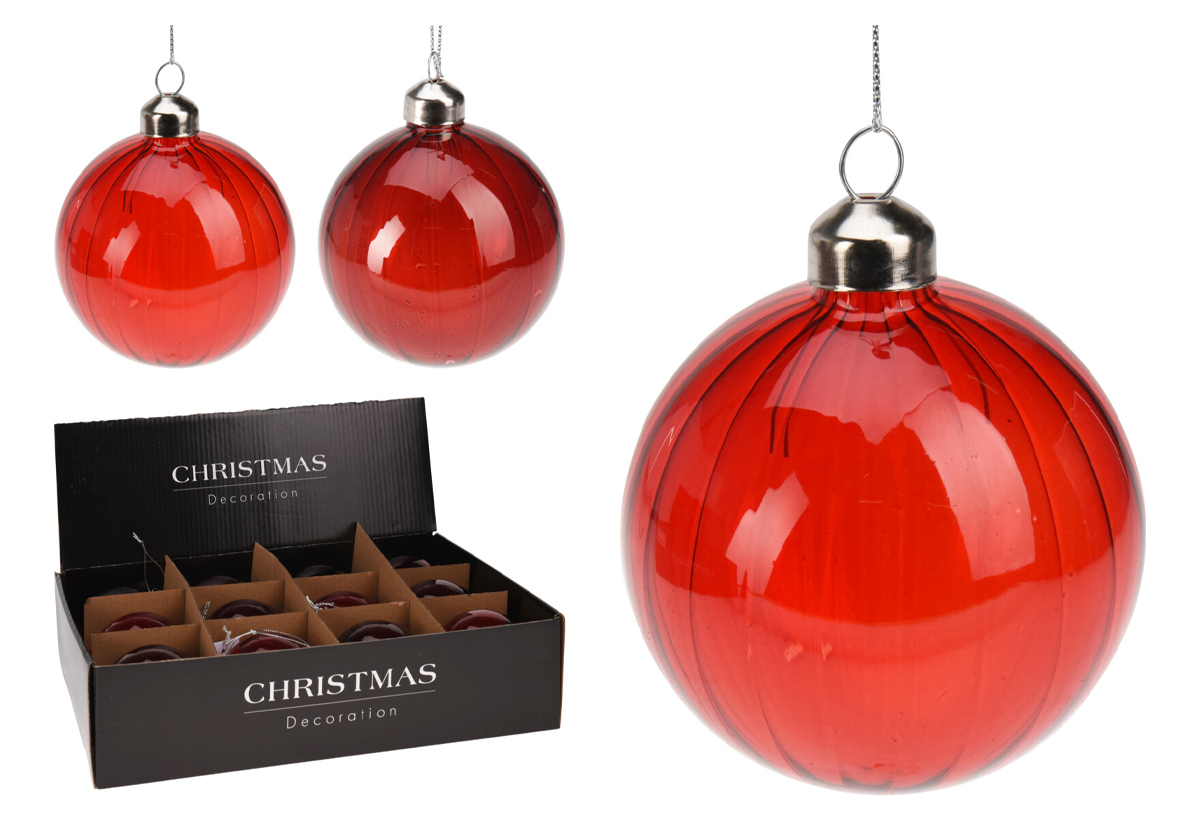 Χριστουγεννιάτικη Μπάλα Γυάλινη 8cm σε 2 Σχέδια Κόκκινη