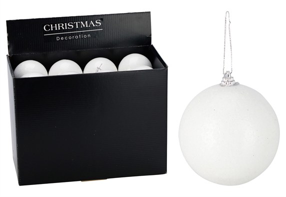 Χριστουγεννιάτικη Μπάλα Πλαστική με Γκλίτερ 8cm Λευκή