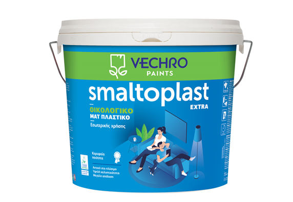 Κορυφαίας ποιότητας ΟΙΚΟΛΟΓΙΚΟ ματ πλαστικό χρώμα για τη βαφή τοίχων, σοβάδων, σπατουλαριστών, γυψοσανίδων. Το SMALTOPLAST extra είναι χαμηλής οσμής και συνδυάζει υψηλή λευκότητα, μεγάλη καλυπτικότητα και εξαιρετική απόδοση. Απλώνει θαυμάσια, δουλεύεται εύκολα και δεν πιτσιλάει. Παρουσιάζει μεγάλες αντοχές στα αλκάλια και άριστη αντοχή στο συχνό πλύσιμο (EN 13300/ΕΝ 11998, class 1). Ελαχιστοποιημένη περιεκτικότητα σε επικίνδυνες ουσίες. Μειωμένη περιεκτικότητα σε πτητικές οργανικές ενώσεις (ΠΟΕ).