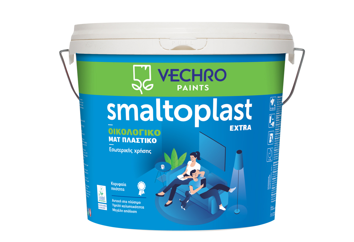 ΓΕΝΙΚΑ ΧΑΡΑΚΤΗΡΙΣΤΙΚΑ Κορυφαίας ποιότητας ΟΙΚΟΛΟΓΙΚΟ ματ πλαστικό χρώμα για τη βαφή τοίχων, σοβάδων, σπατουλαριστών, γυψοσανίδων. Το SMALTOPLAST extra είναι χαμηλής οσμής και συνδυάζει υψηλή λευκότητα, μεγάλη καλυπτικότητα και εξαιρετική απόδοση. Απλώνει θαυμάσια, δουλεύεται εύκολα και δεν πιτσιλάει. Παρουσιάζει μεγάλες αντοχές στα αλκάλια και άριστη αντοχή στο συχνό πλύσιμο (EN 13300/ΕΝ 11998, class 1). Ελαχιστοποιημένη περιεκτικότητα σε επικίνδυνες ουσίες. Μειωμένη περιεκτικότητα σε πτητικές οργανικές ενώσεις (ΠΟΕ).