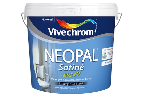 Το Neopal Satine Eco είναι οικολογικό πλαστικό χρώμα πολυτελείας με μοντέρνα βελούδινη υφή και διακρίνεται από το θαυμάσιο ομοιόμορφο άπλωμα του. Είναι πιστοποιημένο και πληροί τα κριτήρια του Οργανισμού Απονομής Οικολογικών Σημάτων της Ε.Ε. Δεν περιέχει αμμωνία και είναι ιδανικό για όλους τους εσωτερικούς χώρους που κατοικούνται. Χάρη στην ειδική του σύνθεση είναι φιλικό στο χρήστη και στο περιβάλλον. Είναι κατάλληλο για χρήση σε σπατουλαριστές επιφάνειες, σοβά, μπετόν, γυψοσανίδες, νοβοπάν,ξύλα. Το σατινέ του φινίρισμα αναδεικνύει μοναδικά κάθε απόχρωση. Δουλεύεται εύκολα και έχει υψηλή λευκότητα και μεγάλη καλυπτικότητα. Παρουσιάζει εξαιρετικές αντοχές στο συχνό πλύσιμο και στα απορρυπαντικά, στις αλλοιώσεις από το κάπνισμα και στις δυσμενείς καιρικές συνθήκες.