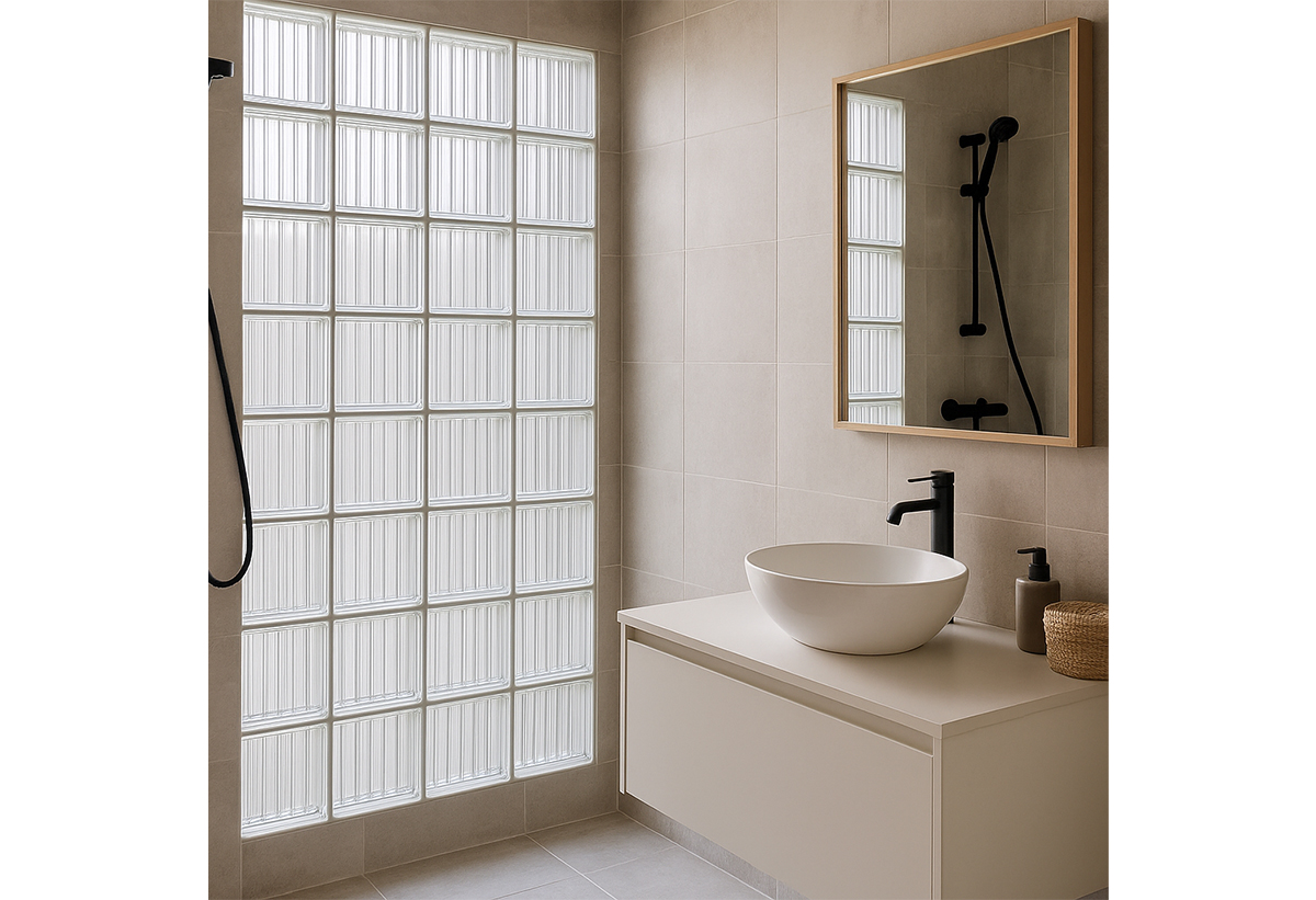 Υαλότουβλο Ριγέ Φαρδύριγο 19x19cm Άχρωμο